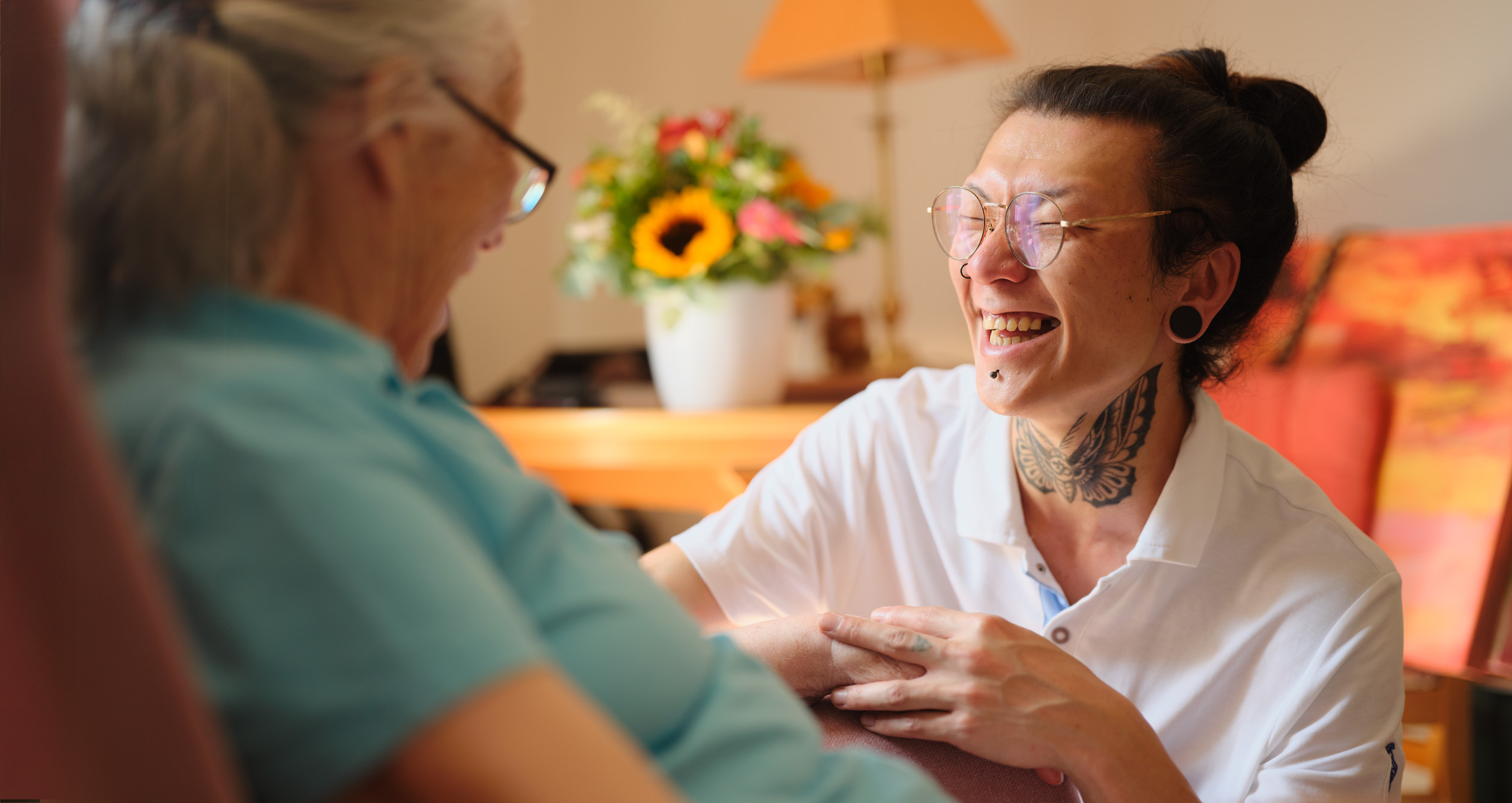 Jeden Menschen, der bei uns wohnt, nehmen wir als ganzheitliches Individuum in den Blick – mit seinem biografischen Hintergrund, seinen Bedürfnissen und Vorlieben. Unser Ziel ist es immer, vorhandene Fähigkeiten zu stärken und die Selbstständigkeit so lange wie möglich zu erhalten. Wenn die Kräfte nicht mehr ausreichen, bieten wir individuelle Unterstützung. Dazu gehört eine vertrauensvolle Beziehung zwischen pflegender und zu pflegender Person – auch mit dem individuell richtigen Grad an Nähe und Distanz.